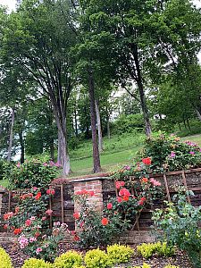 Terasová zahrada s růžemi a vodními prvky byla nedávno založena ve svahu nad špýcharem. Svým stylem odkazuje na renesanční zahrady. Dominují zde červené a žluté růže na jednoduchých ornamentálních záhonech, nechybí pochopitelně tekoucí voda a atmosféru umocňují originální pískovcové plastiky. Barevné terasové zahrady byly zakládány zejména ve Velké Británii již od poloviny 19. století, jejich obliba v současnosti roste v celé západní Evropě.